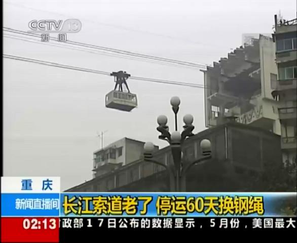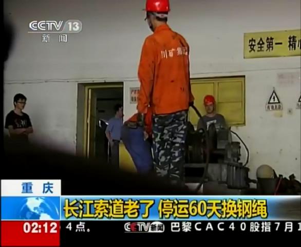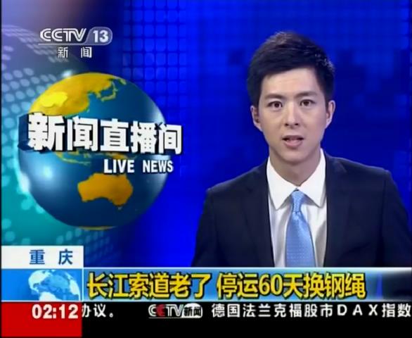 2012年7月18日中央電視臺(tái)新聞?lì)l道報(bào)道川礦集團(tuán)制造和施工的重慶長(zhǎng)江索道