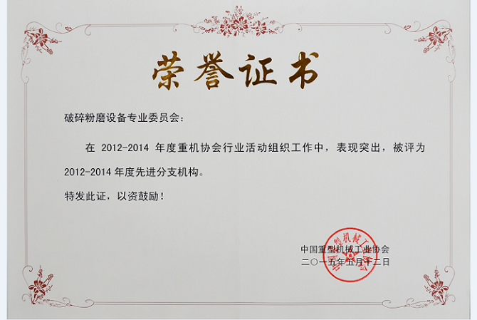2015年5月11日至13日,以“適應(yīng)新常態(tài),尋找新動力,謀求新發(fā)展”為主題,中國重型機械工業(yè)協(xié)會六屆四次會員代表大會暨理事會在北京順利召開。會議審議并通過了常務(wù)副理事長李鏡作的《在新常態(tài)中創(chuàng)出行業(yè)發(fā)展的新空間》工作報告、秘書長岳建忠作的《財務(wù)報告》,表彰了優(yōu)秀分支機構(gòu),我破碎粉磨設(shè)備專業(yè)委員會受到總會的表彰。